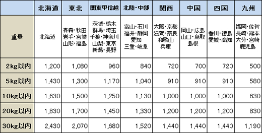 送料は地域と重量によって異なります。