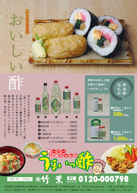 奥豊後竹田発 仕出し屋「竹葉」の「酢ーパーばあちゃんのうまいっ酢」のご案内